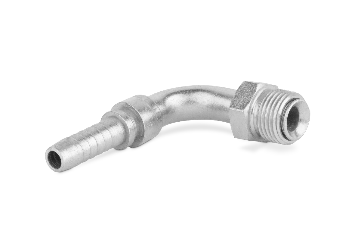 Końcówka do węża kolanko 90st. z gwintem zewnętrznym obrotowym, stożek wewnętrzny 45st. SIF90 SAE DN10 UNF 7/16”-24 IF90-06-04