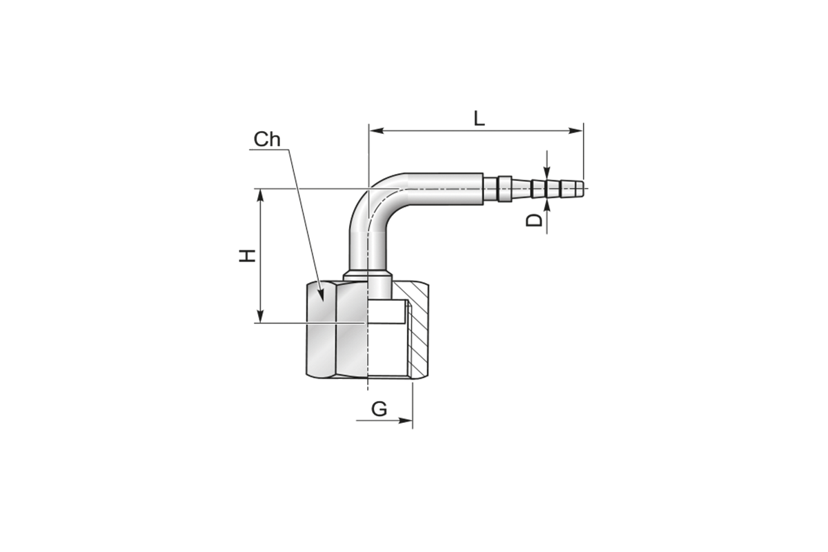 Końcówka do węża pomiarowego DN2 kolanko 90st. z nakrętką, osłoną na tuleje ORFS90 K42-02 9/16" 5991F090