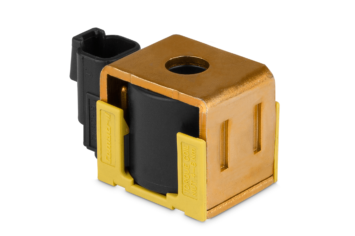 Cewka Danfoss 24V DC 29W z serii ToughCoil do elektrozaworów hydraulicznych. Wysoka odporność, stabilna praca i klasa szczelności IP65/IP67.