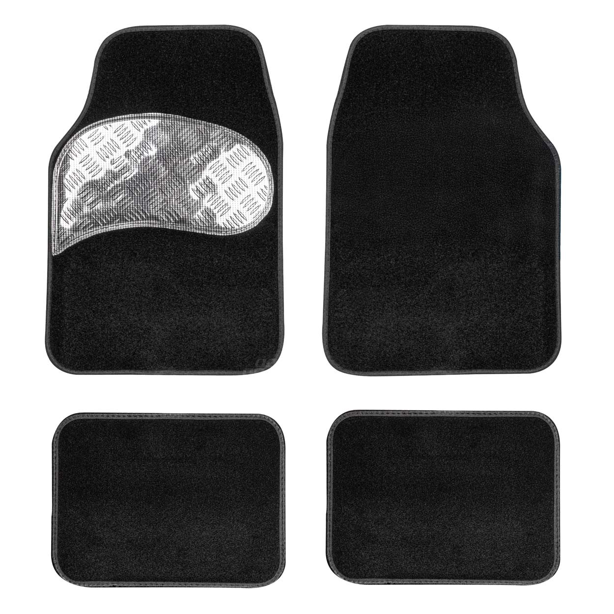 Komplet obejmuje 4 elementy – dwa przednie oraz dwa tylne dywaniki – zaprojektowane tak, aby dopasować się do większości standardowych wnętrz. Antypoślizgowy spód ogranicza przesuwanie się podczas jazdy, zwiększając komfort i bezpieczeństwo użytkowania.