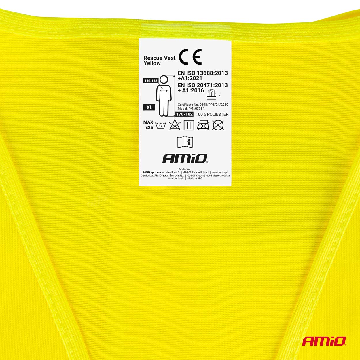 Kamizelka ostrzegawcza odblaskowa żółta XL z certyfikatem AMIO-03934