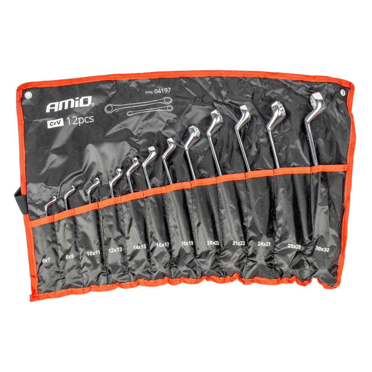 Klucze oczkowe odgięte zestaw kluczy odgiętych 6-32 mm 12 szt. AMIO-04197