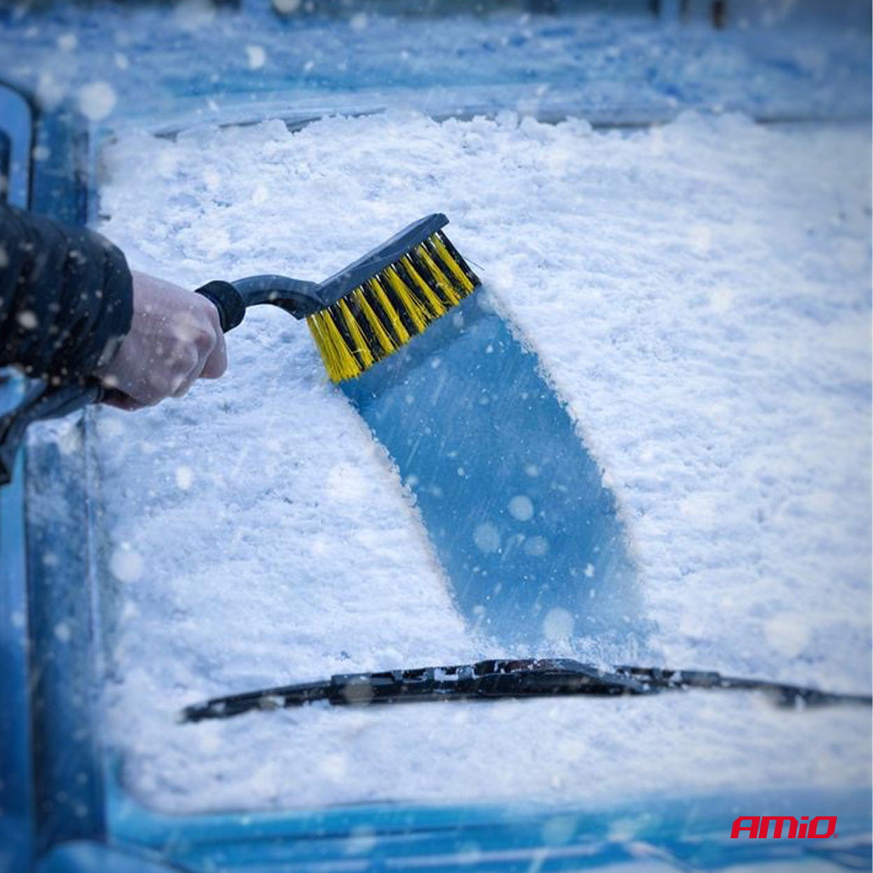 - Szczotka do śniegu – Solidna, miękka szczotka skutecznie usuwa śnieg bez ryzyka uszkodzenia lakieru samochodu.