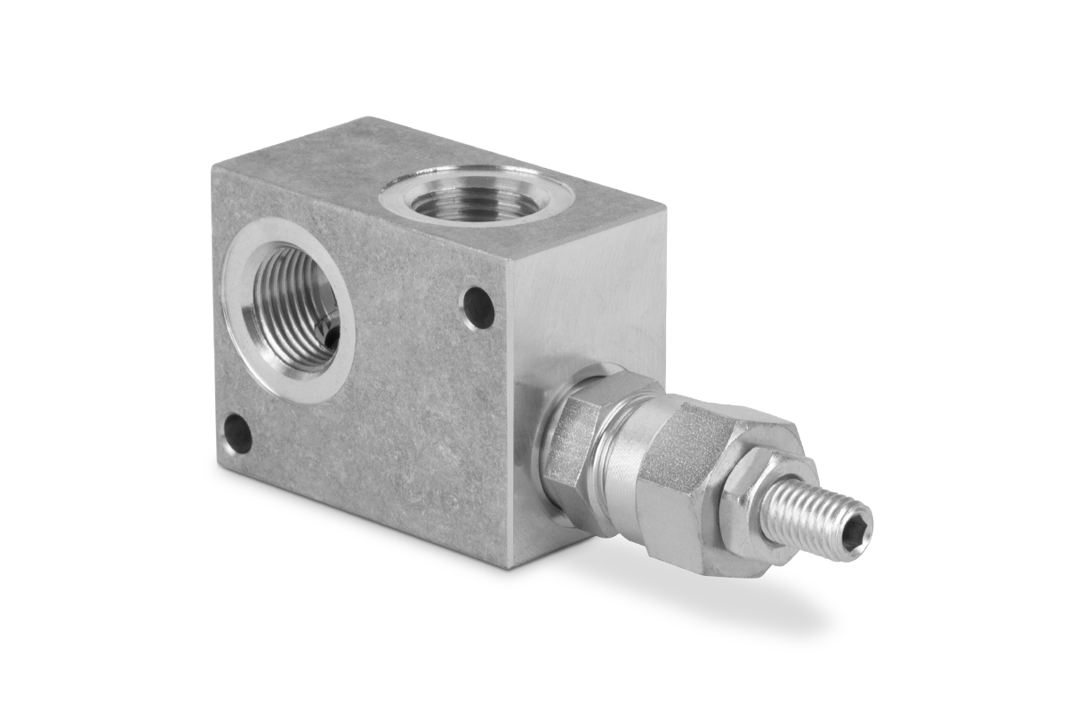 Zawór przelewowy w układzie krzyżowym utrzymuje określoną wartość ciśnienia w układzie, umożliwiając uwolnienie nadmiaru cieczy do zbiornika. Zaprojektowany do łatwego montażu w portach przyłączeniowych w korpusach lub blokach.