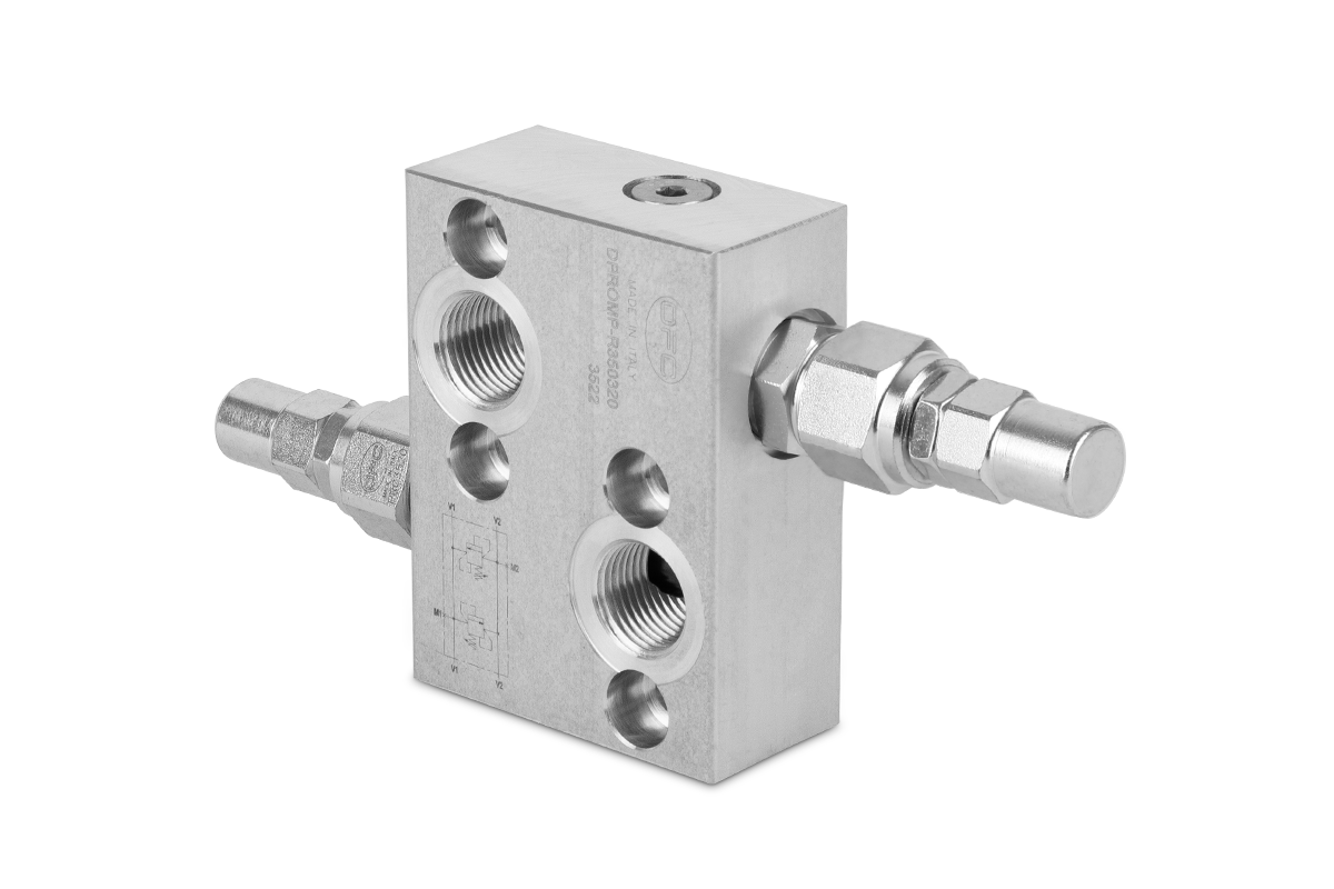 Zawór przeciążeniowy w ukł. krzyżowym liniowy 3/4” BSP 80 l./min. 130-350 bar imbus DPRL800430A