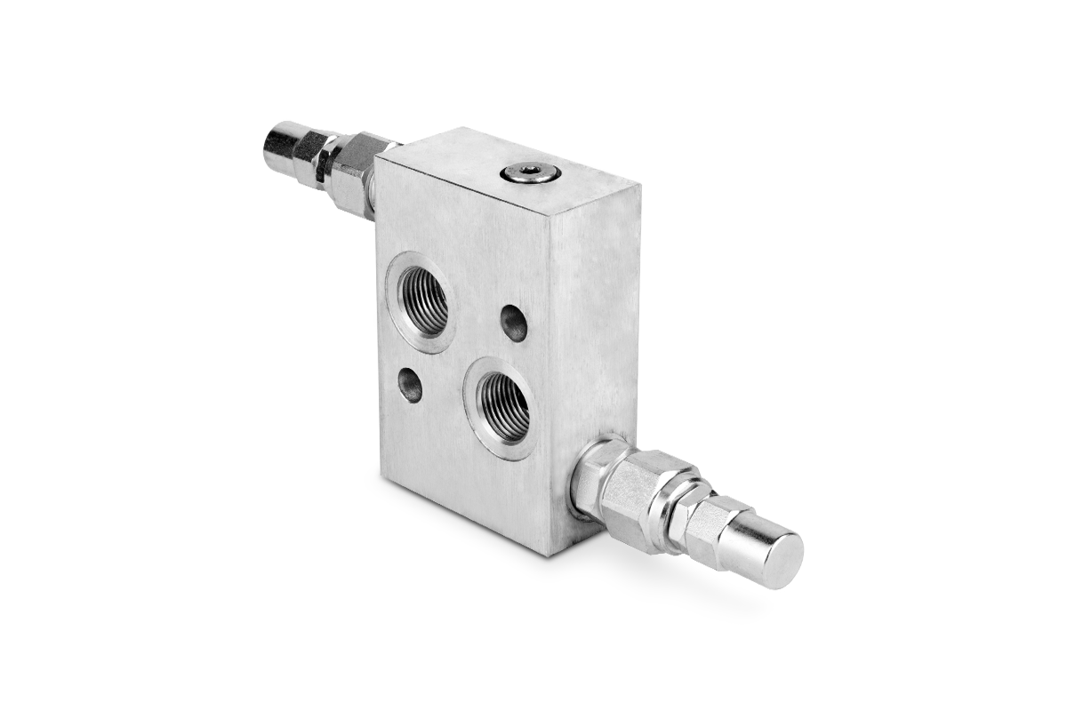 Zawór zwrotny sterowany przeciążeniowy bliźniaczy płytowy 3/8" 40l./min. 60-350bar stal VBCF3802S